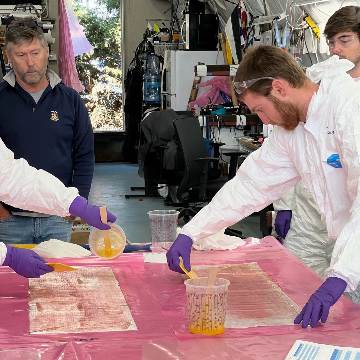 Ben Hunt, class of 2018 vacuum bagging glass fiber laminate